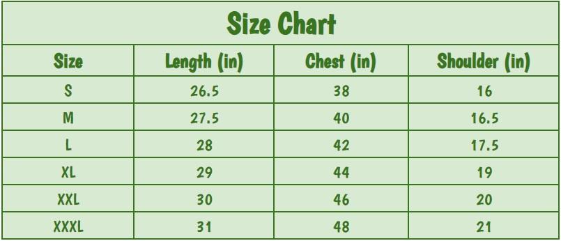 Size Chest Measurements (In Inches): S-38, M-40, L-42, XL-44, XXL-46, XXXL-48