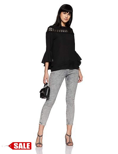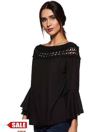 Black Lesho Boat Neck Bell Sleeve Top – GRE