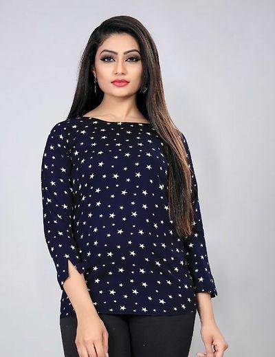 Blue Poly Crepe Printed Top