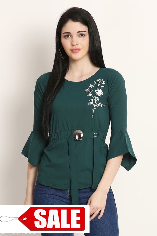 Casual Bell Sleeve Embroidered, Printed Women Tops