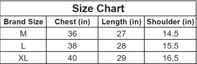 Size Chest Measurements (In Inches): M-36, L-38, XL-40