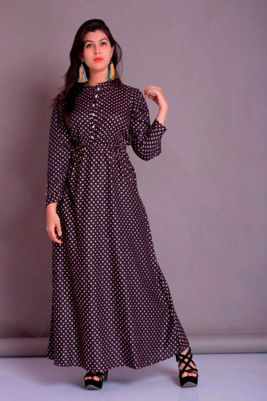 Product Name: Elegant Long Rayon A-line Printed Kurti