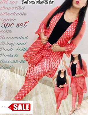 imported stretchable3pc dress with removable shrug and pants with pocket