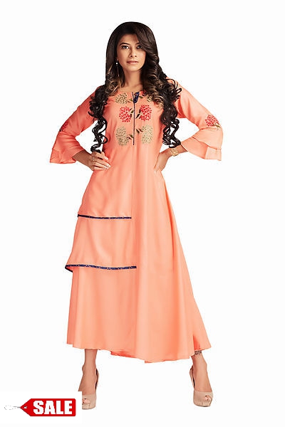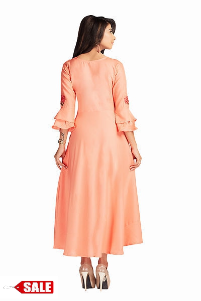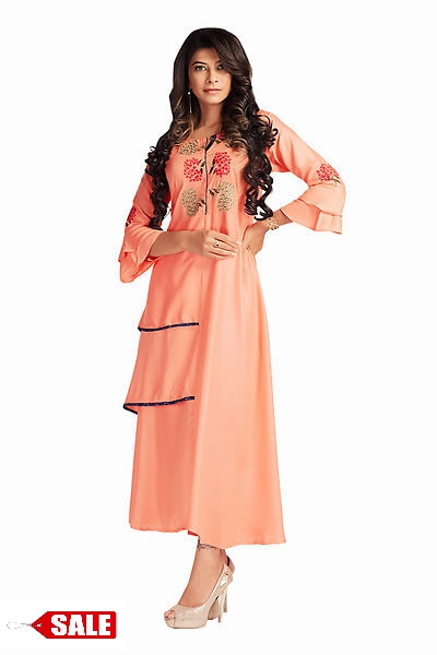 It is Rayon Semi Layer Bell Sleeves Pink Kurti