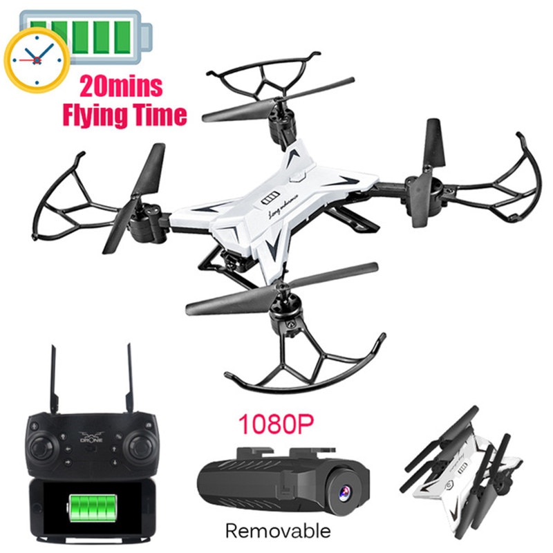 You can choose without camera or with camera according to your needs. Product Size:24 x 24 x 5CM(Excluding Protection Shelf) Age: 14+ Remote Control Distance: about 100 meters Playing Time: about 20 minutes Drone Battery:3.7V1800mAh Charging Time: about 120 minutes Remote Control Battery:3*AA battery(not included) Material: ABS Plastic, Electronic components Features: 1.0.3 MP camera /1080P camera, WIFI real time transmission,Altitude hold enable you to take stunt clear aerial pictures/videos with a ease. 2.Long flight time, about 20 minutes, longer than most of quadcopters. 2.Foldable arm, easy to carry on and storage. 3.Speed Switched.High/ Medium/ Low speed for choices. 4.Headless Mode+one-key return, simplify your control. 5.LED Lights 6.Forward/Backward, Ascend/Descend,Turn left/right, Left/right Side Flight, Fine tuning, etc. Package Included: Drone*1 Remote Control*1 Spare Propellers*4 USB Charger*1 Protection Frame*4 Drop-proof Floor Stand*2 User Manual*1 Note: Use APP to take pictures/videos only.