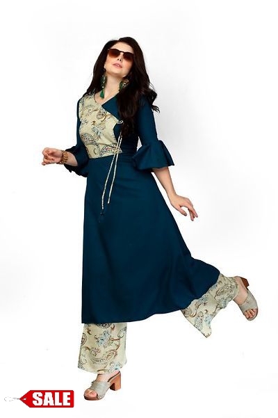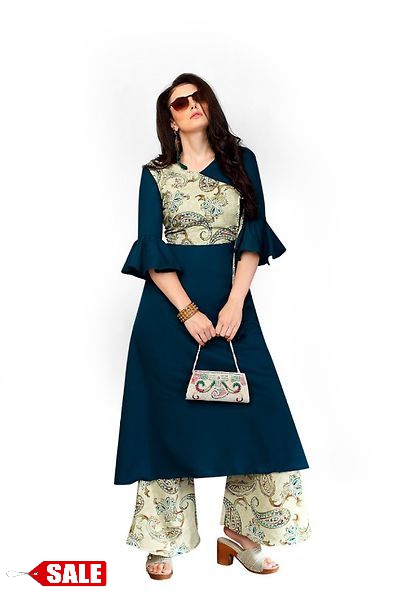 Kurti: Fabric- Rayon And Work- Printed Palazzo: Fabric- Rayon And Work- Printed Size: Kurti- M- 38 in & L- 40 in & XL- 42 in Length: Fit Up To 46 in Palazzo: Waist- Fit Up To 38 in ( Free Size ) Length- Fit Up To 40 in It Has 1 Piece Of Women’s Kutrti & 1 Piece Of Palazzo