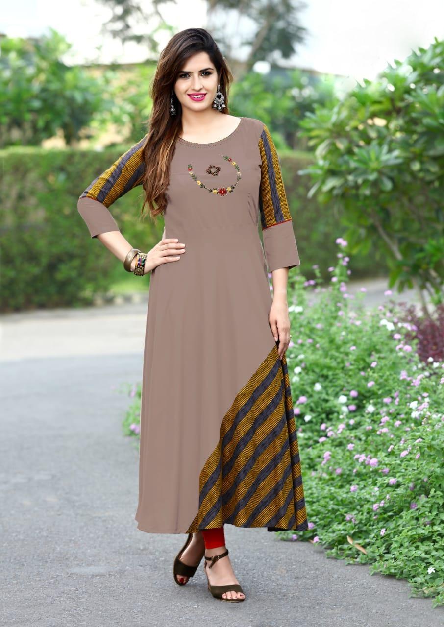 Trendy Heavy Silk Solid with Stripes A-Line Floor Length Kurti – sozo