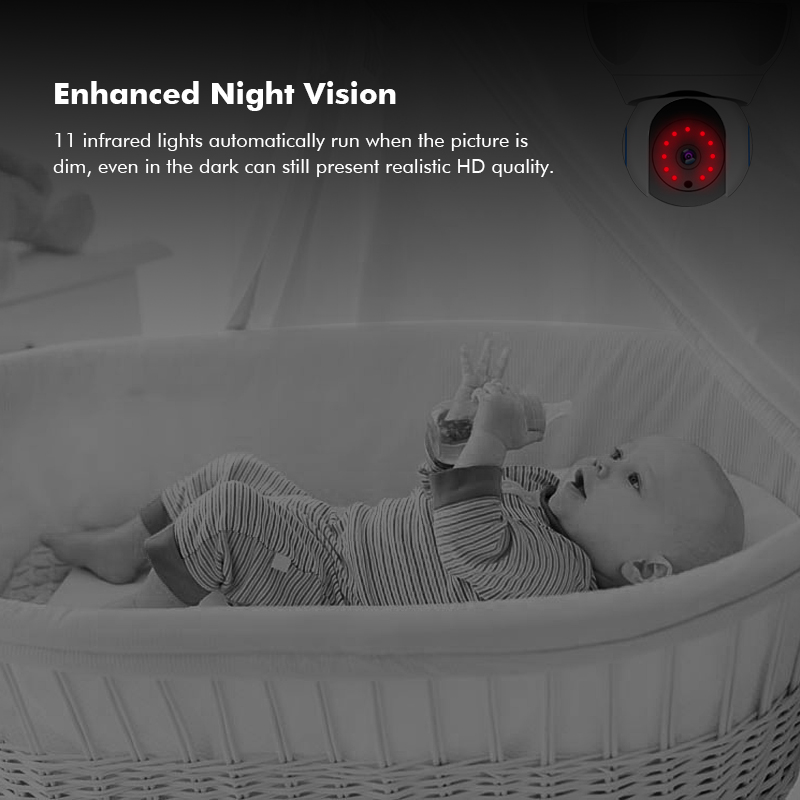 ►Enhanced Night Vision – 11 infrared lights automatically run when the picture is dim, even in the dark can still present realistic HD quality.