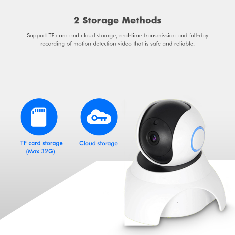 ►2 Storage Methods – support TF card support and cloud storage, automatic loop recording, real-time transmission and full-day recording of m otion detection video that is safe and reliable.