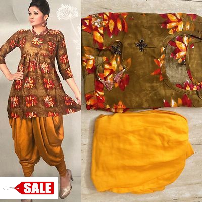 printed rayon kurta with dhoti real pic also attached good quality product size -free size (fit upto 38- 44)